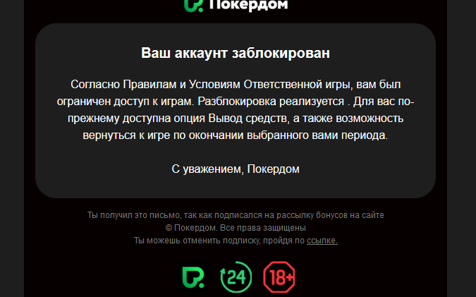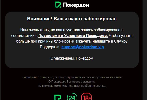 Заблокировали аккуант на Покердом. Поддержка не отвечает. Играю уже много лет проблем не было. Что делать теперь? (