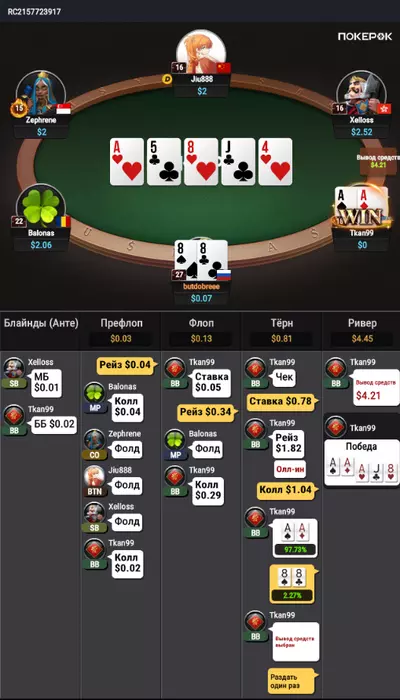 Раздача дня под конец... парень супер сыграл я не мог поверить что там АА ну собствено это не помогло))