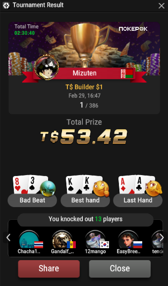 На самом деле очень рад. Начинал свой блог будучи фишом заливающим ABI 0, а теперь не очень быстрой, но довольно уверенной поступью становлюсь лучше. Тем не менее, я все еще нахожусь на дне покерного мира и предстоит большой пласт работы, если я не хочу здесь задерживаться.