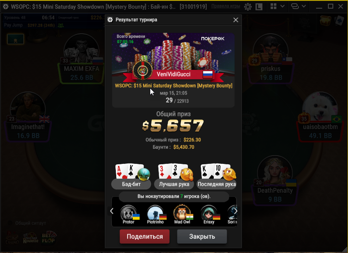 Делюсь результатами игры после тренировок с Русланом. Улучшилось понимание игры, появились хорошие дипы. Дальше больше, будем продолжать!