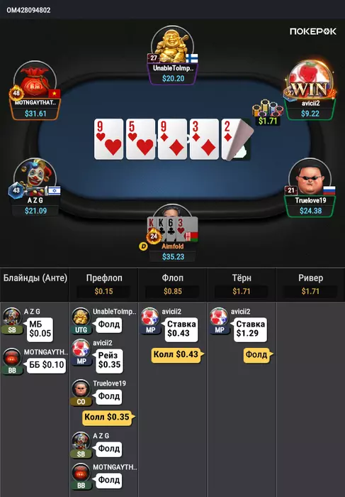 против авичи фолд ( я бы рейзил префлоп против него) он топ рег лов лимитов если что и я даже удивлен что он делает так низко . хотя думаю он больше так не будет.