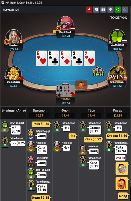 ПС: оппонент фишовый гриндер за лидерборд как и половина за столом включая меня.