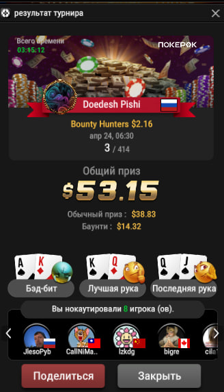 Очень насыщенный тильтовый день, пихал гавно, не пихал нужные руки, блефовал там где не надо, отбивал там где не нужно. Играл против шерсти. Выстрел в ногу, как сказал мой тренер. Ну хули делать, с тильтом надо бороться. Буду снижать загрузку и отыгрывать качественно. Очень много мотыляло сегодня эмоциям, я так отдавался, радовался, огорчался, короче не могу играть как робот. Надо катать спокойнее