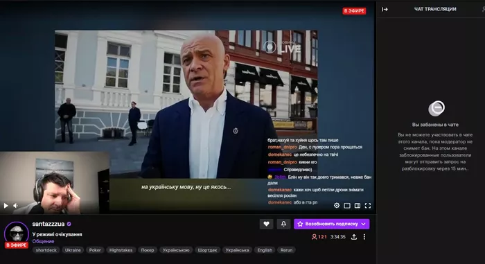 Я зашел с того, что рассказал Дену, что небезизвевстный вам Латикс-стример (на которого я тоже был долго подписан) из Харькова прибанил меня просто за то, что я ему написал в чат на русском. Латикс на это отреагировал оче просто: "Шо? Собачью мову не розумию". И нахуй бан.