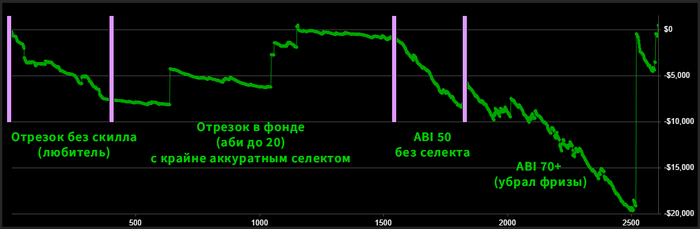 Хотя во время серии гг мог быть геометрический рост АБИ, так как турниры по 250$ не стеснялись грузить, не говоря о 150ках и это сказалось на графике.