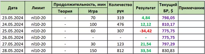 23.05.-25.05.2024 играл очень мало, много работы было вне покера, плюс усталость сказывалась…
