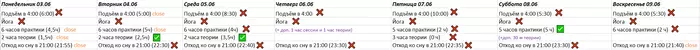 Вот так выглядит кратенький чеклист за неделю (здесь ещё пишутся дела на каждый день, но их офк вырезал)