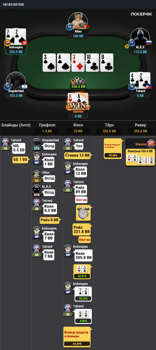 В целом, чувствуется, что реально плохой ран. Над ошибками работаю, играю в хорошем эмоциональном состоянии. Думаю всем знакомо чувство, когда раз за разом кладут не те карты. Выигранные банки даются гораздо тяжелее, а разлетаются стеки очень быстро.