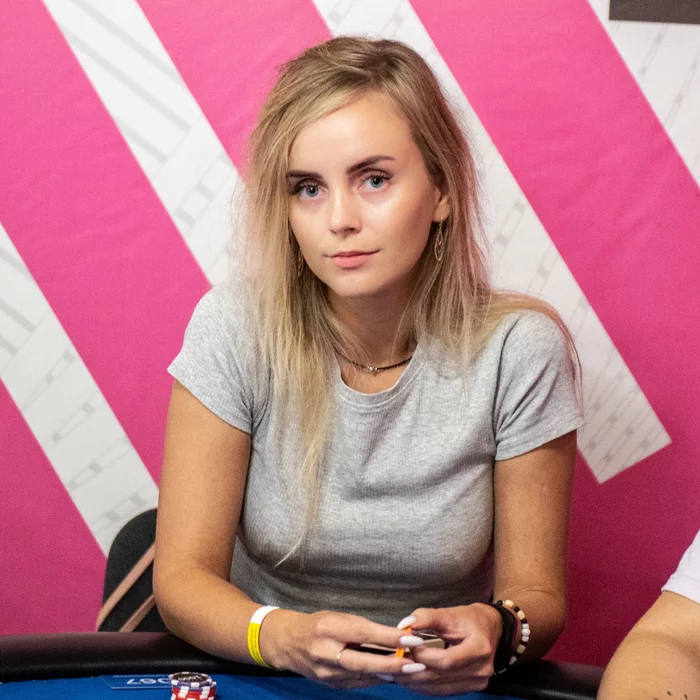 Теряем одну из оставшихся девушек в турнире Анастасию Абрамович. Решила задвинуть олл-ин 45к с BU с и попала в Артёма Малого на SB.