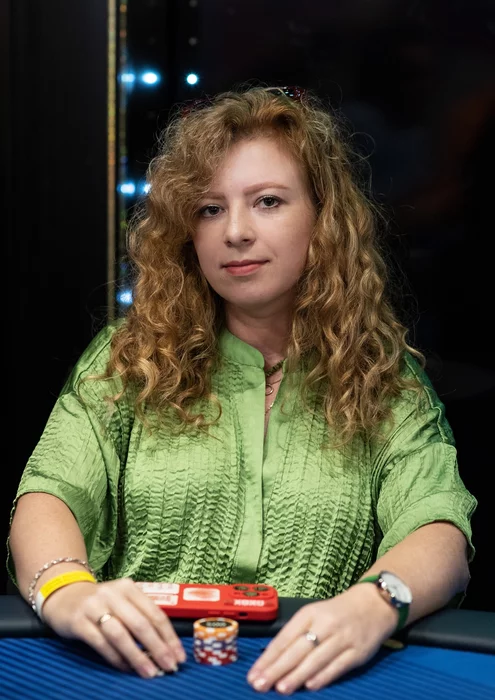 Громов Олег отдал остатки стека (около 3к) Алине Полегошко: < . Алина выиграла немного фишек и $50 по 8-хай.