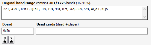 Если с UTG открываешь по красоте 97s, то она блочит всего 13 комб, это 13/214=6.07%
