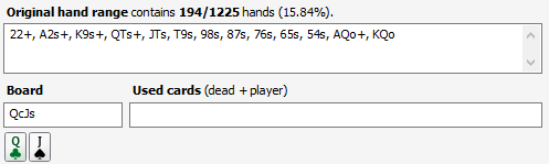 К тому же наполнение ренжа опенрейза напрямую влияет на частоту, с которой в тебя будет прилетать 3бет или колдколл за спиной, или колл BB - опять же эффект блокеров. Какие-нить 97s с UTG блочат ренжи дефа весьма паршиво (для UTG итак швали хватает, типа мелких Axs, K6s+, но эта шваль блочит больше рук).