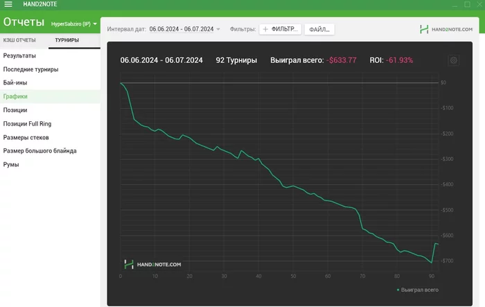 1) Касаемо курса. Прошел я процентов 40. Но чувствую потом все еще по новой придется пройти, повторять материал точно не помешает моему развитию. По прогрессу могу сказать, что значительно улучшилось понимание игры в целом, уже и мышление поменялось, особенно хотел бы отметить что по префлопу я закрыл многие свои внутренние вопросы, которые не давали мне покоя. Результаты за месяц могут конечно говорить об обратном, но почему так получается, я уже расписывал выше. НО тут я бы хотел добавить, что дисперсия конечно оказывает влияние, но в основном еще больший минус в моем графике это результат моего отношения к покеру как хобби до сих пор, отсутствие целей, недостаточное понимание того, что прохождение курса просто на лайте не поможет мне, если нет желания ебашить. То что происходило на ривере это конечно бьет больно каждый раз, но когда ты после этого ничего не делаешь, не ищешь пути обхода таких вылетов, в принципе относишься ко всему не серьезно, и только обманываешь себя тем, что вот, я же прохожу курс, чем это не работа над игрой, то так и останешься любителем кормить акул в ущерб себе и вечно ходить обиженным что судьба так обходится с тобой жестоко.