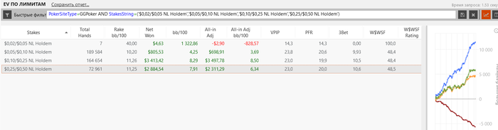данные из hm3, вроде по цифрам +- сходиться, во многом я думаю, почему на гг 3бб а на старзах 10, потому, что на гг многие подсели на иглу лидерборда и афк в тарелку катают по дохуя часов скатываясь в "c" игру, играя эти мертвые составы в "счастливые часы", ну и рейк и отсутсвие трекеров, я пытался на nl10 в начале тоже на лб играть, и имел эти же 3 бб/100 потом понял, что моя b или с игра не бьет рейк. А на стразах кепка в 4 стола и нет лб, т.е скатиться в b или с игру сложнее