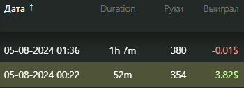 Обнаружил один очень интересный момент. За все время игры на покерке (полтора месяца) у меня нет ни одной сессии длиннее 2 часов и всего лишь 3-4 длиннее 1ч 30мин. Могу провести 3-4 коротких сессии за день, но ни одной по-настоящему длинной не было. Причем довольно часто покинуть столы хочется уже через минут 40, независимо от того, в плюс играю или в минус. Хочу разобраться, в чем же причина, ведь для стабильного заработка в покере усидчивость очень важна. Если я выхожу, потому что надоедает играть - то это серьезная проблема. Может мне вообще не стоит делать на покере ставку, используя его лишь как хобби выходного дня. Либо попробовать переключиться на турнирный покер, где у меня не так плохо получается (лучше чем в кэше) и где дополнительный азарт может помочь с той самой усидчивостью. Или я драматизирую и сессии по 1 часу для кэшевиков это норма? 🙄 Мне кажется, что нет ))