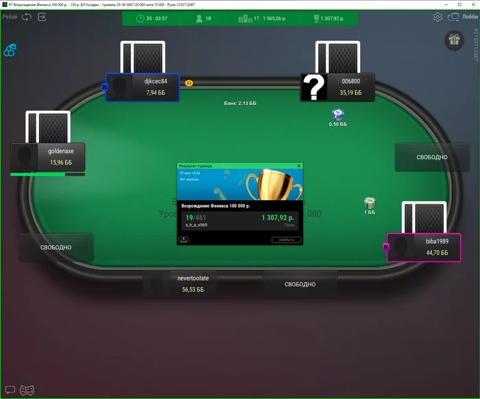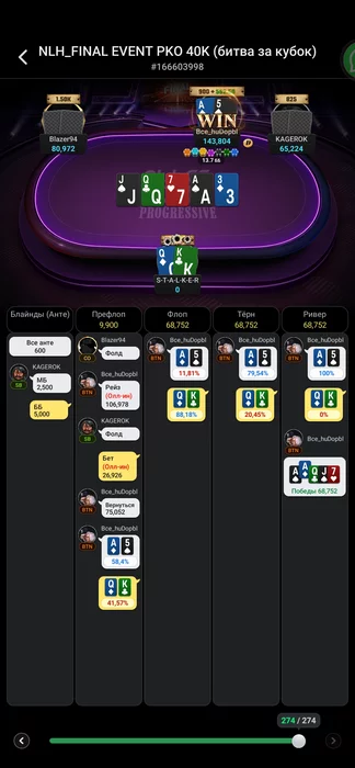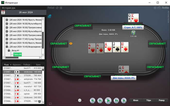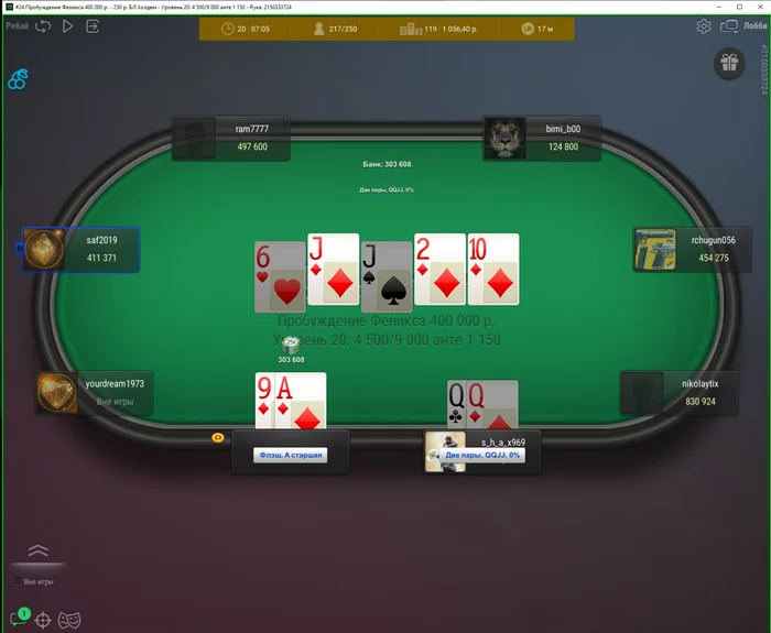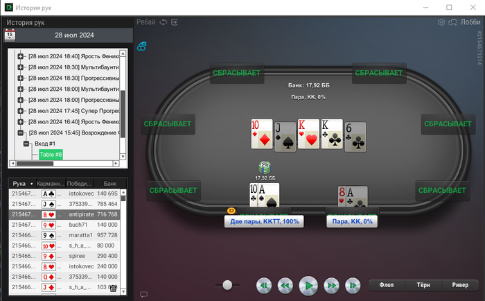 Отобрался с сателита в турнир причем неплохой. Как итог по началу не складывалось, потом раскрутился чутка далее чел запушил с А4 я заколил с АК посмотрел в грязь, ну и по итогу 2 выставление до окончания лайте реги префлоп выставление прошло так же. Ну такой скам. Короче уехал на работу. Всем удачи тащите!