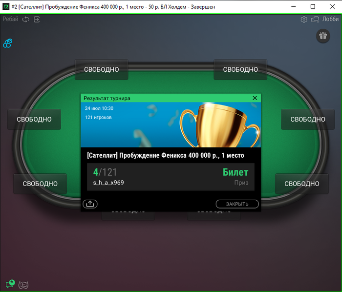 Всем доброе утро откатал вчера немного турниров на покер доме. Была возможность неплохо подзатащить но увы всего лишь 19 место, а призовые были сочные. Взял так же 2 место там конечно было сложно перевес большой да и оппу складывалось. В целом результатом доволен. Сейчас на работе, чёт чувствую себя не очень. Ну а так в целом работаем.