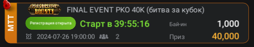 Вот вам пожалуйста важный турнир итм и 1 выставление! за первое место $1400+