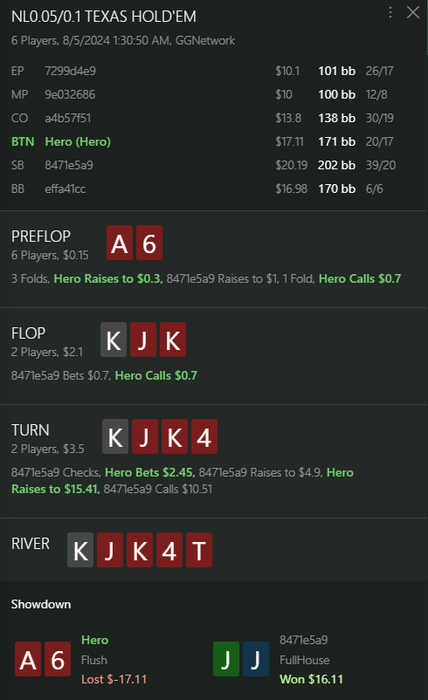 При этом он пару раз инста выкинул на флопе, когда я сет ловил, что вообще было не в его стиле.