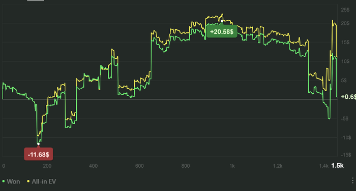 Крайне сложно идут сессии. Все, что выигрывается, выигрывается слишком тяжело. А вот проигрывается буквально в пару раздач куллером. Но иногда все-таки случаются вот такие подарки