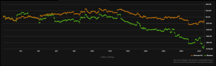 Вот так выглядит график лютой жести. Причем выигрывал он не только у меня, а вообще у всего стола почти и ушел с деньгами по итогу.