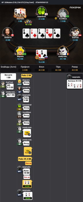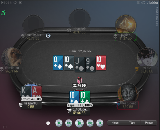 Нашли 10-10 на бб приятно, но опять я не могу победить QJ, хоть и не АА в этот раз, но все равно приятного мало.