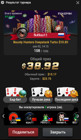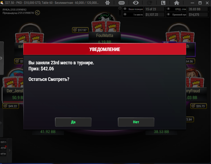 Ну и ласт турик был 15 вечерний freezeout (скрины не делал, по ласт раздачи можно было отскачить, но я уже потом это понял)