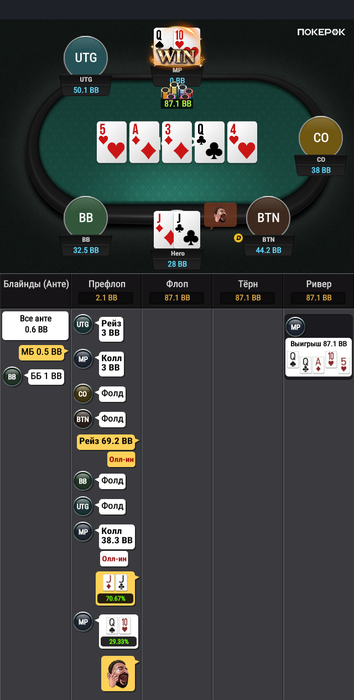 потом такая, наверное можно плоскача дать на его 3 бет, и на алл ин мб отскакивать.
