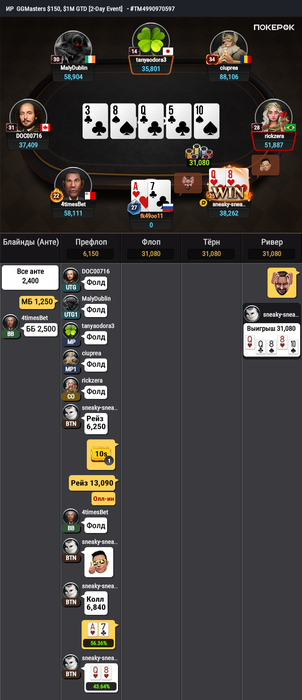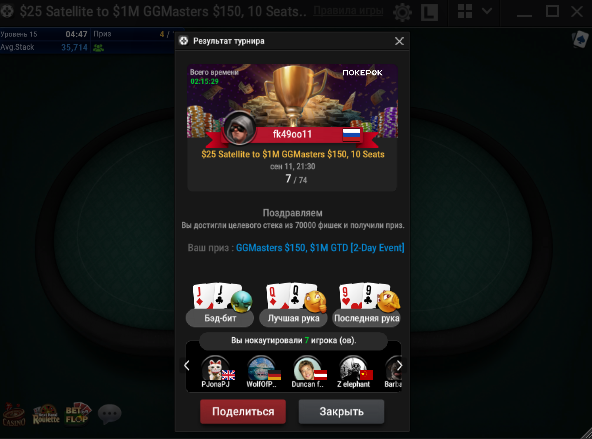 и вообще было все четко, тоже оставался один турнир, играл его спокойно, обдумывал все свои действия