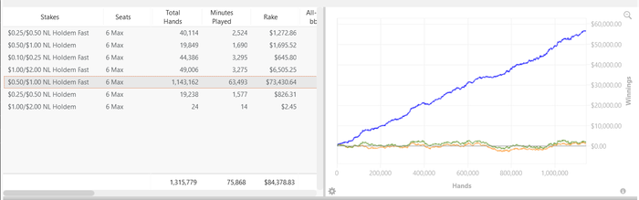 Общий график с нл100 раш за год, на нем сыграно 90% раздач и включать другие лимиты с разбросом в 8 раз ради 10% рук как-то сомнительно.