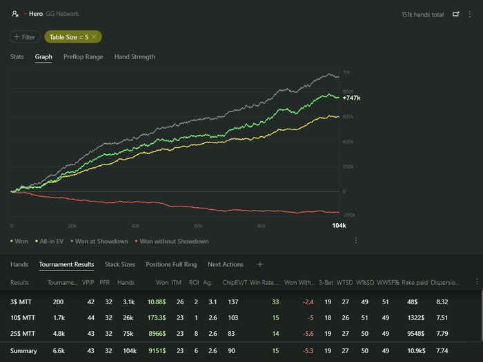 Наш hero в конце прошлого года окончательно устал от стриков в мтт и в конце декабря решил бросить свой аби 30 и начать карьеру в роялях. Начали мы с 3-го лимита и hero показал невероятную вовлеченность в обучающий процесс и наигрыш, поэтому верхний лимит не заставил себя долго ждать! И вот уже в марте перешли на 25-й лимит на постоянную основу🤑 Результаты ниже:
