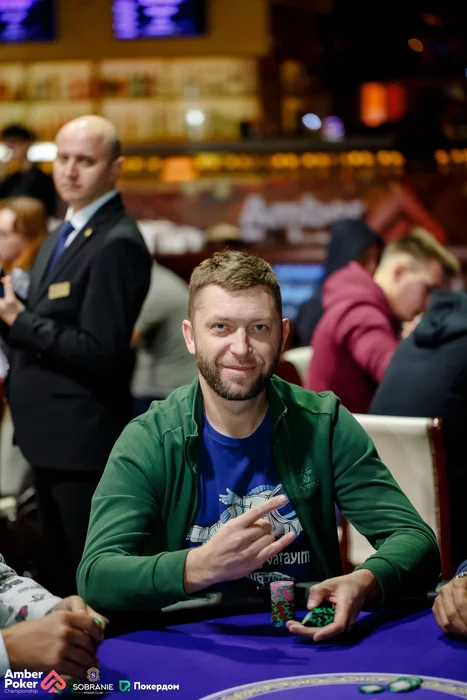 Примечательно, что Олег Сунцов, не смотря в карты (вел разговор и просто отвернулся), сказал пас, а потом посмотрел в них. Там оказались короли!