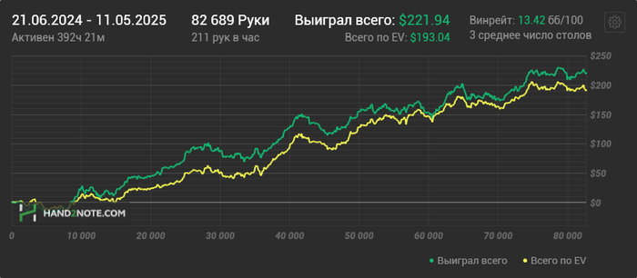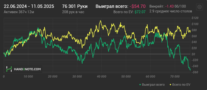И вот самое интересное, посмотрев, сел играть сессию на пл5, и в какой-то момент я понимаю что игра идёт на пл50, моментально ставлю ситаут на следующем большом блайнде, выхожу со столов, но результат -60$ .