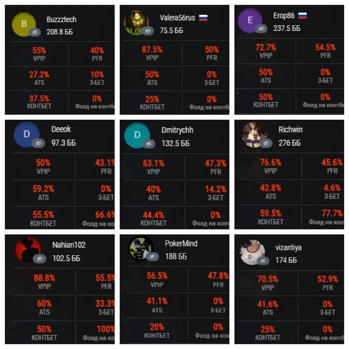 Фото привел как общие показатели "по больнице" стиля игры на руме. Ни на кого конкретно из игроков в публичном поле кидать обвинения не стану так как нет прямых доказательств.