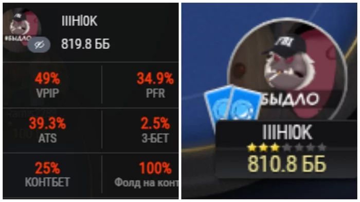 Так же привожу фото инфы игрока, которого вы 100% встретите за любым из столов NL2-10. Он будет с самым большим стэком всегда, и эти, приведенные мною здесь статы - это еще не предел.. так же его 3-бет на самом деле выше. Ну, как говорится, назвался груздем - ...