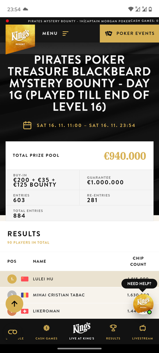Сегодня как и планировал, играл Мейн Ивент. Людей насобиралось 603 человека, 281 реентри. У меня получилось пройти в день 2 с первого раза (реентри я принципиально не делаю, чтобы приучать себя к дисциплине и сразу играть как фризаат). Стек слабенький, 15 бб - 74 по счету иду в списке. Игра заняла чуть более 12 часов.