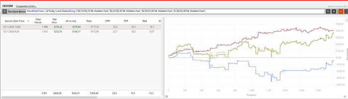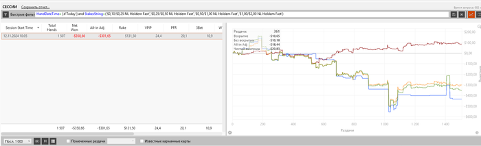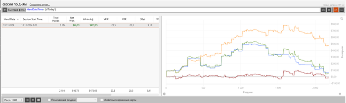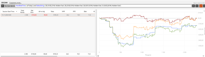 Ну что пошла обраточка! Сел сегодня после обеда в супер приподнятом и прям боевом настроении(думаю будет видно по красной на графике) Настроение было повоевать за банки.К сожалению в раздаче на скрине с 87с,чуть не хватило для колла, так бы прям очень доволен был бы.Оппонент ничего толкового не изображал,но в этот раз выпал фолд как говорится🤣.