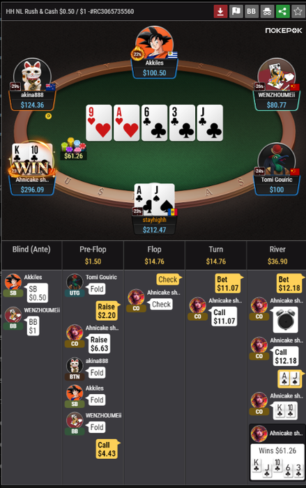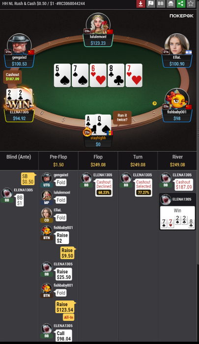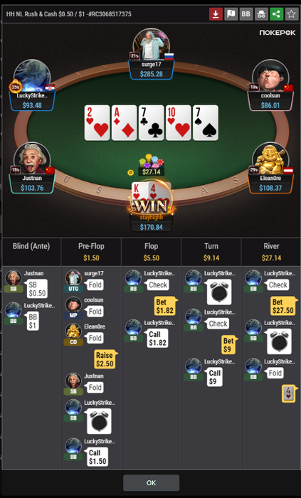 Снова сегоня продавливали нитов(занятие,конечно сомнительное).Но в конкретной раздаче(скрин ниже) я решил, что ранаут вышел идеальный,ну и тайминги его смутили,он уже как будто на терне не сильно хотел платить.