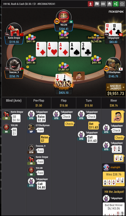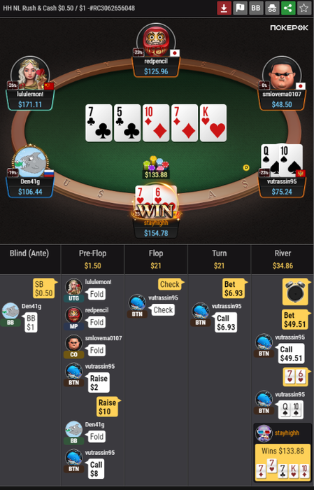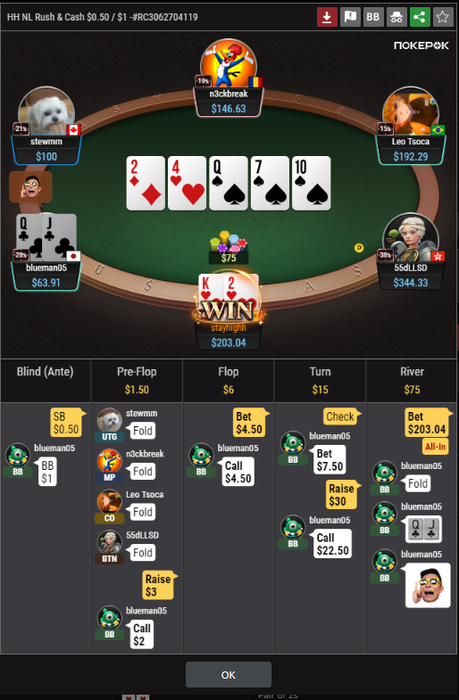 Во второй раздаче на скрине,я вот думаю,либо я их настолько заебал рейзами ривера,либо настолько слабый пул все-таки.Но,если честно это уже просто абсурд такое играть колл на ривере.Как говорится ,где были его яйца...