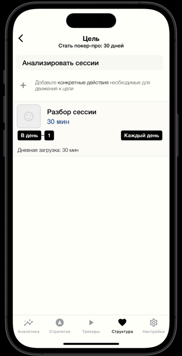 Проблема при работе с коучем была в том, что для разных желаний могли быть схожие задачи. И на листке в линейном виде это почти невозможно выразить цельной структурой. К примеру, желания "Хочу быть здоровым”, "Хочу прокачать пресс" и "Хочу много женщин". У них есть схожие задачи, например, регулярный спорт, а конкретно упражнение на пресс. Он разный по длительности может быть. Для “прокачать пресс” - 20 мин в день, а для “много женщин” не нужно прям идеала и достаточно 5 мин в день.
