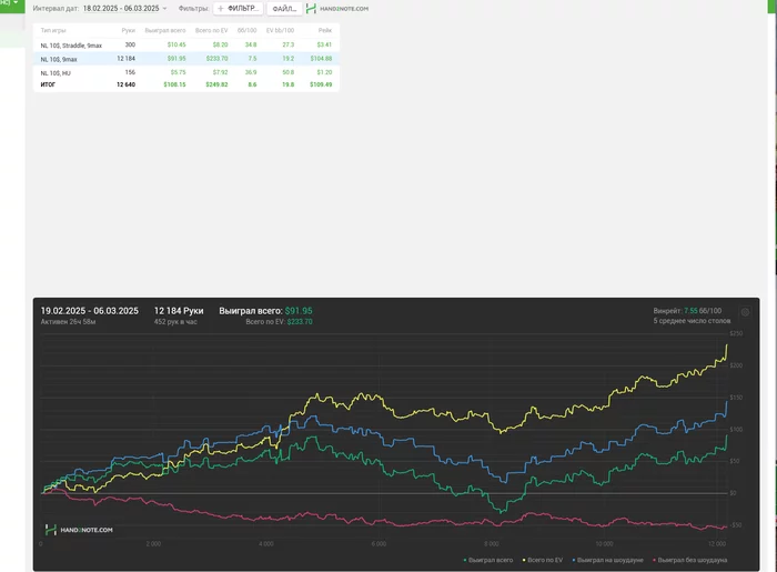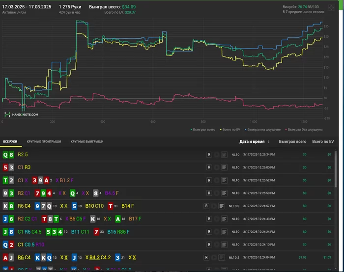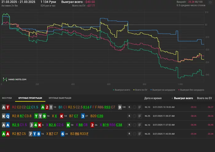 Включил 5 столов нл 10 и 2 стола нл 25, успел откатать около 100 рук на новом лимите и понял, что пора закрывать.
