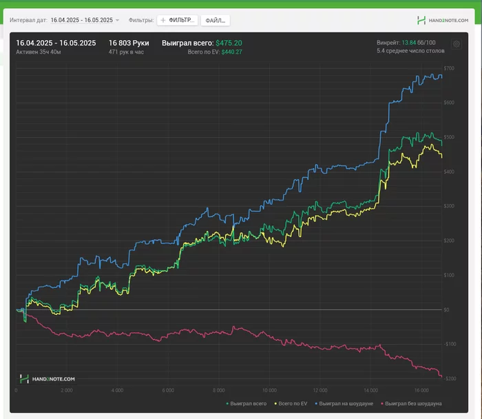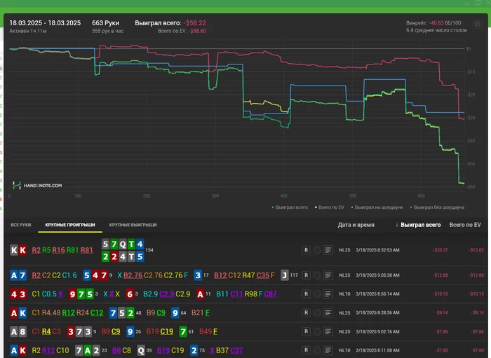 Вчера сделал + 40$, а по программе типо всего + 15, а из стола бум пота вставал + 550бб и этих раздач нет в программе.