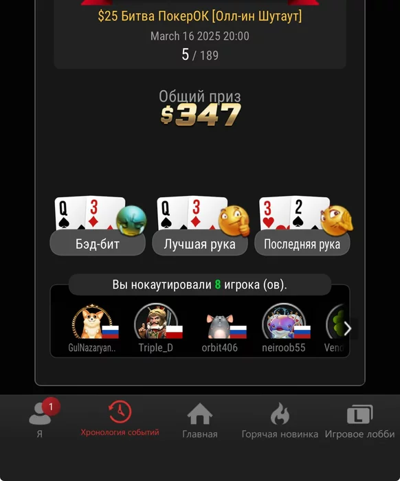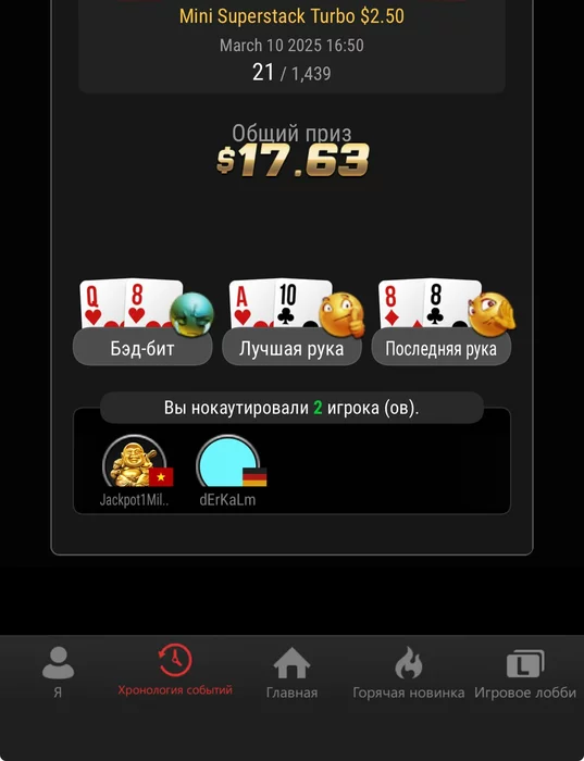 В данном турнире шёл чип лидером, но уснул и получилось неважно