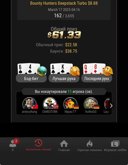 И напоследок, делюсь покерными успехами за первую половину марта. Банк пополнился на 900 долларов, 500 из которых уже ушли на погашение финансовых обязательств. Свобода всё ближе и слаще с каждым днем!