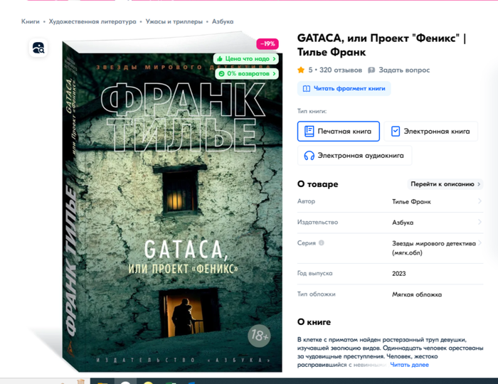 Врать не буду, кроме Гранже ничего не читал из детективов/триллеров. Тоже советовали Несбе. Я знаю, что есть молодой писатель Франк Тилье, чьим кумиром является Гранже, стилистика у них очень похожа. Сейчас посмотрел, отзывы у Тилье очень хорошие, заказал на Озон “Gataca, или проект “Феникс”