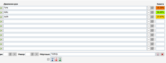 2) С В8с, нам по сути нужно обыграть именно К10с. Тут эквити выглядит так: