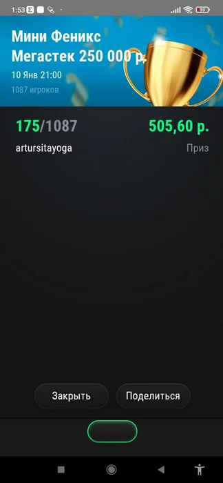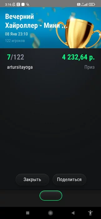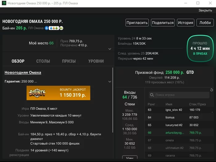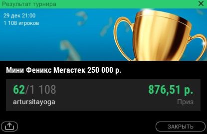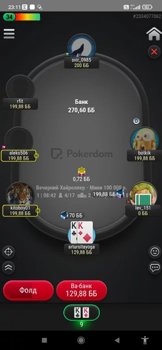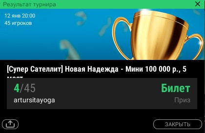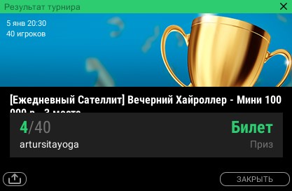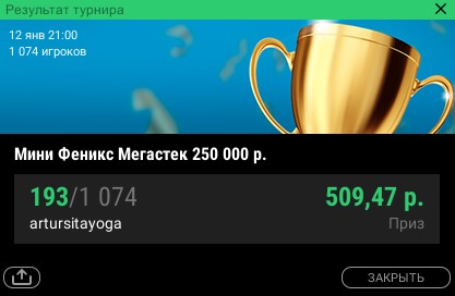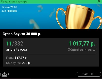 В итоге эти тур. по 1000 плохо отыграл,особенно Хайроллер,хотя шёл неплохо (4,5 стартовых) 1 раздача и тильт постучал в дверь(нах*я открывать было,не понятно:))