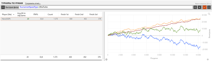 В целом, формат GG мне нравится и устраивает наличием флешей. Если же я пойду катать на редстар обычные спины, то с учетом рб в 35% будет выходить 11$ за 450 турниров, а столько отыграть вряд ли получится на обычной скорости, а это значит убираем треть и остается только 7$. Смогу ли я ежедневно получать там недостающие 15$ за счет скилла?