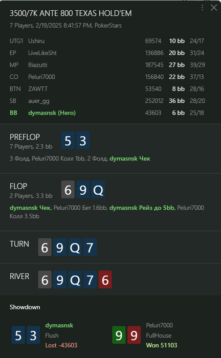 Кто, что думает по этой раздаче? Ривер фолд или колл?