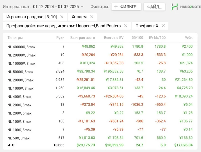 Посчитали не большой пак для коинпокера, где с каждого берется анте 0.1бб 7макс.